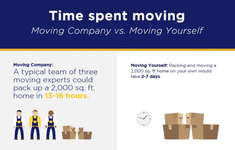 According to Movers.com, packing a house over 2,000 sq ft can take up to seven days. By comparison, a moving company can have a house of the same size packed within just 13 to 16 hours. Likewise, it’s safe to assume that a moving team can help clients move their things into their new home in that same span of time as well.
